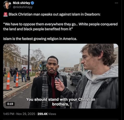 Black Christian man speaks out against Islam in Dearborn: “We have to oppose them everywhere they go… White people conquered the land and black people benefited from it” Islam is the fastest growing religion in America.